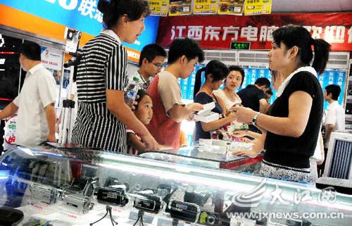 電腦、手機(jī)、MP3已經(jīng)成為目前一些家庭經(jīng)濟(jì)條件較好的大學(xué)生的“新三樣”,成為學(xué)生新學(xué)期的新裝備。某商場的一名導(dǎo)購員告訴記者,開學(xué)前的這段時間是數(shù)碼產(chǎn)品的銷售旺季,各商家均紛紛采取各種促銷手段來吸引學(xué)生群體。正在南昌市一電子數(shù)碼城購買MP3的大一學(xué)生小王告訴記者,考上大學(xué)時父母就答應(yīng)給她買手機(jī)和MP3,今天和媽媽一起出來挑選。