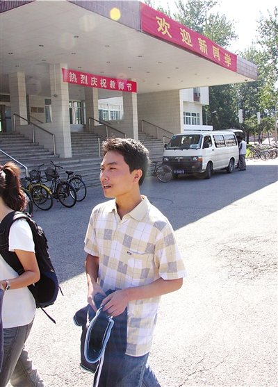 昨天上午9點,河南少年胡攀攀穿著灰色T恤,出現在北大醫(yī)學部校門口。隨后,他走進校園,熟練地向記者介紹著北大醫(yī)學部的各個教學樓。很明顯,此前他對這個學校的情況已有所了解。他說,6年前,他從未想過能來北大。
