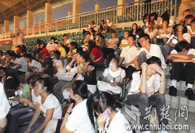 記者當(dāng)即趕到位于江夏區(qū)大花嶺的該校,學(xué)生們的情緒很激動(dòng)!罢猩(jiǎn)章上明明有護(hù)理學(xué)專業(yè),現(xiàn)在為何突然取消?”王同學(xué)說(shuō),他們就是沖著該專業(yè)來(lái)讀書(shū)的,現(xiàn)在要他們轉(zhuǎn)其他專業(yè),他們無(wú)法接受。直到昨晚7時(shí)許,近200名學(xué)生坐在操場(chǎng)的看臺(tái)上不愿離去(如圖)。一名姓嚴(yán)的家長(zhǎng)聞?dòng)嵹s來(lái),他氣憤地說(shuō):“校方太不負(fù)責(zé)任了,事先沒(méi)有任何溝通,孩子們?cè)跄懿浑y受!”