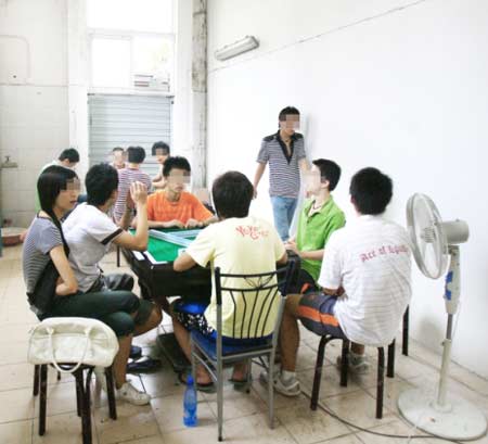 “里面賭得很大,一把牌最多可以輸200元!痹撏瑢W(xué)說,小文(化名)以前在附近一家書店里賭博,今年開始逃課來這個地方賭。如果打通宵,第二天上午就不上課,在寢室睡覺!叭ツ昙依锝o的學(xué)費都輸了,向家里要的買電腦的錢也輸了,輸了近萬元。他家里的經(jīng)濟(jì)條件并不太好,讓人看著痛心!