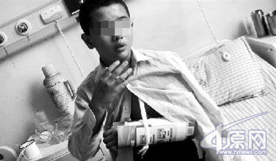 “我回到鄭州后,到醫(yī)院一檢查,我胳膊骨折錯(cuò)位,如果再不接上,事就大了。昨天,醫(yī)生給我做了接骨手術(shù),在骨頭上打了鋼針!庇浾呖吹,他的胳膊還腫得厲害。