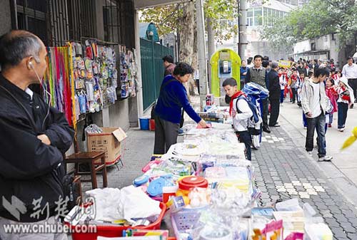 胡女士的兒子說,這些東西都是在學(xué)校門口的小攤上買的;有的同學(xué)一次拿不出幾十元錢,攤主還允許他們“分期付款”。胡女士曾找過攤主,指責(zé)他們不該用這種方式引誘小學(xué)生,但攤主沒有理會。