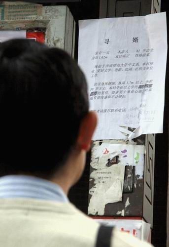 據(jù)父親劉先智(化名)介紹,他和妻子都在成都東郊一家大型國有企業(yè)上班。他們對女兒贊不絕口,從小學(xué)、中學(xué)到大學(xué),女兒一直都沒讓家里操過心,2005年大學(xué)畢業(yè)后通過公招考進了成都某機關(guān)上班。現(xiàn)在女兒已經(jīng)26歲了,還沒有男朋友,看著女兒身邊的同齡同學(xué)和朋友有的結(jié)婚、有的生子,他們一天比一天著急!芭⒆舆^了28歲找對象就不容易了!現(xiàn)在最不放心的,就是女兒的婚姻大事!眲⑾戎钦f,他們都是很傳統(tǒng)的家庭,結(jié)交的圈子都不寬,第一次張貼這種尋婿啟事,也是抱著試一試的態(tài)度。