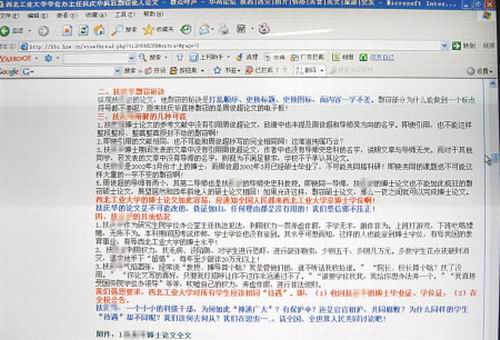 11月17日,一篇“西北工業(yè)大學(xué)學(xué)位辦主任扶××瘋狂剽竊他人論文”的帖子出現(xiàn)在西安一家網(wǎng)站論壇上。發(fā)帖者“西工大研究生”在帖子里稱,扶××系西北工業(yè)大學(xué)研究生院學(xué)位辦公室主任,2006年12月獲工學(xué)博士學(xué)位,其博士論文題目是“高速公路規(guī)劃的系統(tǒng)工程方法研究”,這篇文章剽竊了西北工業(yè)大學(xué)周俊超的碩士學(xué)位論文“高速公路規(guī)劃方法研究及應(yīng)用”。帖子里還列出表格,詳細(xì)對比了兩篇論文的剽竊頁碼,該網(wǎng)友認(rèn)為,扶××論文的1至5、8至20、25至32、35至44、56、67至77、79、120至121共計(jì)51頁,涉嫌剽竊周俊超碩士論文的1至6、8至52、54至55、64至67、72頁,共計(jì)58頁。