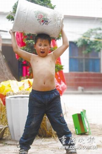 開縣有個6歲男童,他1歲零4個月時,就提起了5公斤重的東西;5歲時,背起了70多公斤重的母親;現(xiàn)在,更是輕松背起了體重93.5公斤的大人……在當?shù),他有個雅號,叫“小小大力士”。