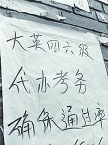 “大學(xué)英語四、六級,代辦考務(wù),保證通過!”“包過,四級答案,提供隱形耳機!”最近,類似的小廣告出現(xiàn)在沈陽市個別大學(xué)的校內(nèi)論壇甚至水房路邊電線桿。