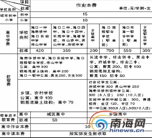 通知要求:高中和職業(yè)學校的學費、住宿費、假期補課費按瓊價費字[1999]235號文規(guī)定執(zhí)行。已交擇校費的學生免交學費。高中和職業(yè)學校課本費根據(jù)有關文件規(guī)定,按實際發(fā)生的收費,及時結算,多還少補,不得盈利。