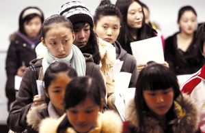 大圖:眾俊男靚女不懼嚴(yán)寒來報名,只為一圓明星夢。 小圖:為考電影學(xué)院備戰(zhàn)良久,女孩從未想過失敗。 晨報記者 殷楠/攝