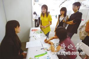昨天,今年春季我市最后一場應(yīng)屆大學(xué)畢業(yè)生就業(yè)雙選會(huì),在陳家坪技術(shù)展覽中心舉行。大會(huì)首次開設(shè)實(shí)習(xí)單位雙選區(qū),幫助在校大學(xué)生尋找實(shí)習(xí)單位、培養(yǎng)工作經(jīng)驗(yàn),30多家單位提供的數(shù)百個(gè)實(shí)習(xí)崗位,因其太“低檔”而難以吸引學(xué)生目光。