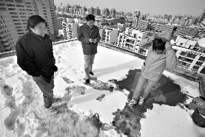 昨日上午,朝陽區(qū)華展國際公寓20余業(yè)主爬上C座15樓頂天臺“抗議”小區(qū)不供暖,要求相關部門立即解決小區(qū)供暖僵局。