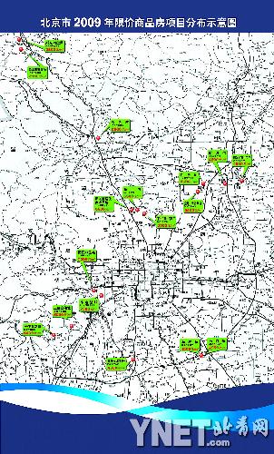 北京市2009年限價商品房項目分布示意圖(來源:北京青年報)