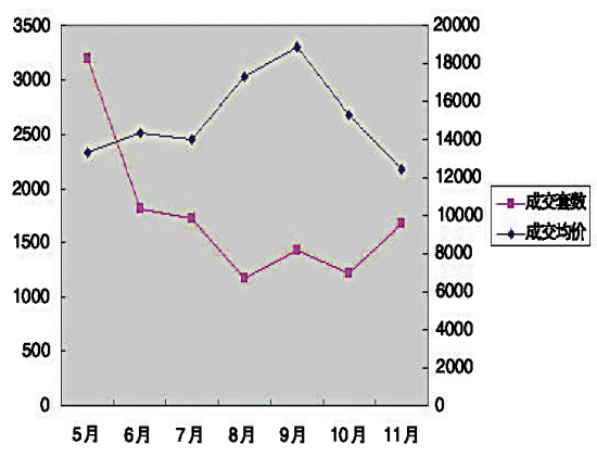 根據(jù)杭州透明售房網(wǎng)銷售記錄統(tǒng)計,11月杭州主城區(qū)共成交商品房1677套,成交均價12467元/平方米。這是杭州9月份萬科降價風(fēng)后,成交量最高的一個月。從漢嘉地產(chǎn)提供的今年5月至今杭州主城區(qū)商品房每月成交統(tǒng)計數(shù)據(jù)來看,這樣的成交量是今年5月的一半左右,和7月成交量接近。