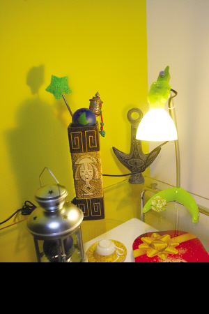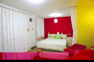 剛進入蘋果家時,只覺得和大多數(shù)零居一樣,唯一的居室兼具臥室、客廳和餐廳的功能,很實用。走到屋子中央才感受到它的特別之處:近一半的墻面是艷麗的紅色和黃色,但另一半是白色墻壁的過渡和各式小配飾的點綴,整個屋子并不俗氣、怪異,反讓人覺得這是一個現(xiàn)代女孩的溫馨小屋。