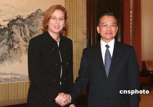 十月三十日,中國國務(wù)院總理溫家寶在北京中南海紫光閣會見以色列第一副總理兼外交部長齊皮·利夫尼。中新社發(fā) 廖文靜 攝