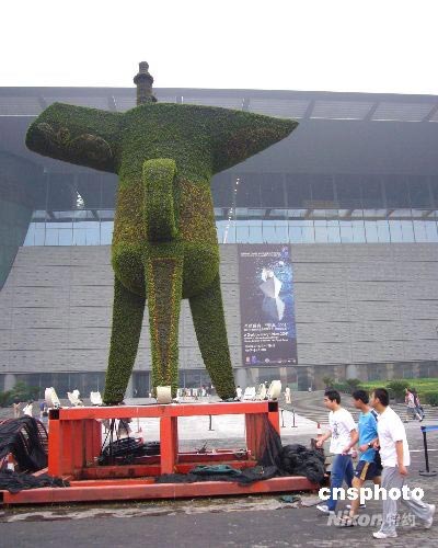 6月29日,一尊高約8米的 “巨鼎” 亮相北京長安街頭。這尊“巨鼎”是由綠色植被塑成的,為即將到來的北京奧運會增添了獨特的韻味,吸引過路行人側(cè)目。 中新社發(fā) 玉龍 攝