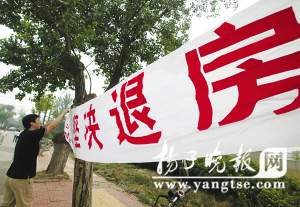 在售樓處門外,記者看到一位市民拉起了寫有“堅(jiān)決退房”等字樣的橫幅和標(biāo)語,樓盤的安保人員不僅沒有制止的意思,甚至還打電話給朋友說樓盤降價(jià)了,趕緊來買房。短短一個(gè)上午,世茂濱江的售樓處便會(huì)集了十多位來“討說法”的買房人,其中一位甚至拉住來看房的市民,一個(gè)勁地說開發(fā)商不誠信,房子不能買。