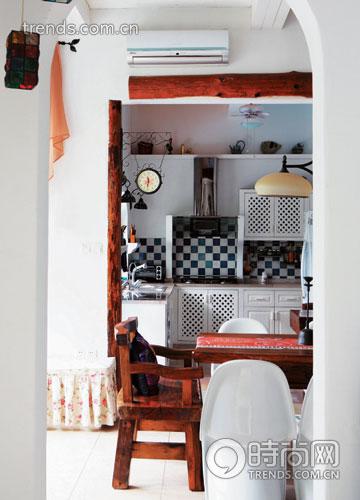 為適應地中海家居寬廣悠遠的感覺,小米在空間改造上動了“干戈”:在原來客廳與餐廳連通的開放式的大空間里,運用加法,在戶門入口處幾平方米的地方加蓋了一個拱形門廊,分隔出玄關和客廳;在客廳與餐廳中間,也加建了一道墻體,在兩旁分別開出一個小拱門,拱門是典型的地中海家居元素之一,令空間更顯天然、浪漫,然后他又將原來的廚房改成衛(wèi)生間,將原來的衛(wèi)生間改成開放式廚房,廚房緊連著戶外的庭院,光線更充足,更有法式鄉(xiāng)村風味;而廚房與餐廳的過渡,就以那幾條自然粗獷的木柱框出門廊;二樓也同樣做了不少變動,原來走廊上的第一個房間打通成開放式的會客偏廳,原來的浴室改成衣帽間,原來的套房內(nèi)的衣帽間就變身成為浴室,連帶將陽臺也打通,這樣一來室內(nèi)光線更顯明媚,視覺上更通透,更統(tǒng)一,各個空間既相牽系亦各自獨立,更有層層遞進的視覺驚喜,功能與美學珠聯(lián)璧合。