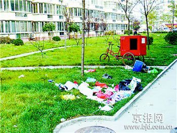 記者昨天上午11時趕到華龍苑北里小區(qū),發(fā)現(xiàn)小區(qū)門口沒有一個保安,任何人都可以隨便進出小區(qū)。更意外的是小區(qū)里很少見到垃圾桶,草坪上隨處可見居民亂扔的垃圾。