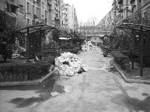 “現(xiàn)在最大的問(wèn)題是保潔和保安!毙^(qū)業(yè)主委員會(huì)負(fù)責(zé)人傅先生說(shuō),寧工新寓是一個(gè)有著1000戶居民的大小區(qū),由于物管突然撤離,大量生活垃圾無(wú)人清掃清運(yùn),只得堆在樓前、綠地的空曠處,十多天下來(lái),小區(qū)已是臟亂一片,“再這樣下去,肯定臭翻天!”