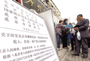 根據(jù)新頒布的城八區(qū)經(jīng)適房、廉租房審核標準,街道是申請者要過的第一關。昨天一大早,東直門街道就接待了50多名申請者,“我們一開門,‘轟’一下子擠進一堆人。”街道工作人員告訴記者,當天他們共接待了200多位經(jīng)適房申請者。