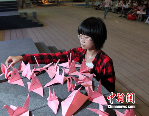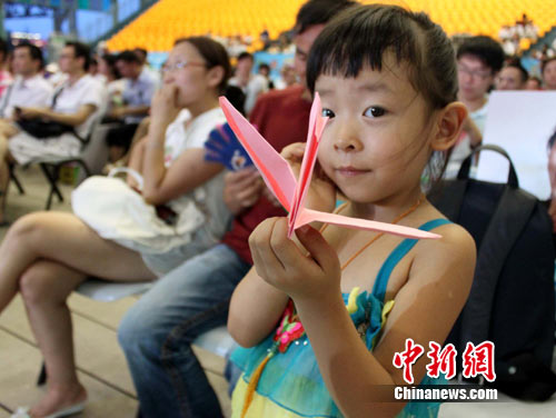而經(jīng)典紅歌音樂(lè)會(huì)現(xiàn)場(chǎng)的近千名世博游客也紛紛親手折制紙鶴,將其一一放到舞臺(tái)上為舟曲人民祈福,整場(chǎng)音樂(lè)會(huì)充滿(mǎn)溫馨與感動(dòng)。