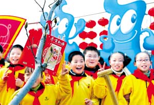 “2010年,請到中國來!”今天上午,寶山區(qū)和衷小學的學生們在白玉蘭樹上掛一張張世博心愿卡,與“海寶”一起喜迎世博。今天是元宵節(jié),恰逢上海世博會開幕倒計時800天,寶山區(qū)炮臺灣濕地森林公園里彩旗招展、鑼鼓喧天,“迎世博紀念林”種下第一批白玉蘭。