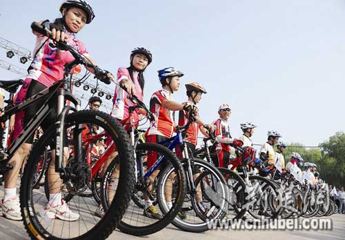 昨日(9月6日)上午,21名上海世博會志愿者帶著吉祥物“海寶”,騎著單車抵達(dá)武漢,并在漢口江灘與江城志愿者共同舉行“迎世博·城市演繹——長江萬里行”活動武漢站儀式。