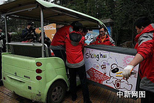 5日上午8點(diǎn),“2010大熊貓世博行”歡送儀式在雅安碧峰峽基地舉行,儀式后10只世博熊貓于9:30左右啟程前往成都,將于下午13:30-14:00之間從成都雙流機(jī)場(chǎng)乘專(zhuān)機(jī)飛往上海。