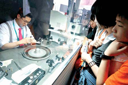 據(jù)劉子斌介紹,此次他們在世博會(huì)上首次開辟了裸鉆售賣的服務(wù),價(jià)位從1萬元到45萬元不等,沒想到在短短的兩個(gè)多星期內(nèi),就售出50多顆,其中最大方的一位買家更是買下了一顆價(jià)值20萬元的裸鉆。(范彥萍)