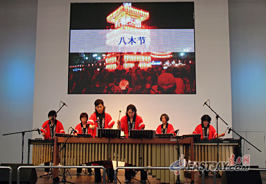 東方網(wǎng)記者向場上工作人員了解到,在日本產(chǎn)業(yè)館,每天都會上演四場音樂會,時間分別為11:00、13:30、16:00和18:30,諸多來自日本本土的專業(yè)級音樂團體將為觀眾帶來風(fēng)格迥異的音樂節(jié)目,且每周都有不同的樂團前來獻(xiàn)演。在這里,藝術(shù)家們將用或民族、或世界的樂器演奏中日等國的民族樂曲,而本周的節(jié)目將由日本著名的馬林巴樂團“北星會”出演。