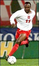 這位1978出生的希臘帕納辛奈科斯隊(duì)的前鋒是一個(gè)尼日利亞人,不過在波蘭總統(tǒng)的親自過問下,這位黑人前鋒得以迅速加入波蘭國(guó)籍,而他在代表波蘭國(guó)家隊(duì)的第一場(chǎng)比賽中就不負(fù)眾望攻入一球,使本隊(duì)逼平了東歐勁旅羅馬尼亞。他在本次預(yù)選賽中攻入了8球,對(duì)于波蘭第一個(gè)從強(qiáng)隊(duì)如林的歐洲賽區(qū)第一個(gè)出線,起了決定性的作用,也得到了波蘭人民的一致認(rèn)可,已經(jīng)被公認(rèn)為是波蘭的英雄人物。