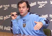 不過(guò),這似乎并不影響他的執(zhí)教能力。正是在他的帶領(lǐng)下,阿根廷近年來(lái)向世人呈現(xiàn)了一場(chǎng)場(chǎng)精彩的攻勢(shì)足球。可以說(shuō),他瘋狂的3-3-3-1攻擊陣容,已經(jīng)深入人心。對(duì)于2002年的世界杯目標(biāo),他的回答很簡(jiǎn)單:不但要奪取世界杯,而且還要贏得好看。