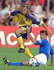 瑞典足球有著輝煌的歷史,該國(guó)曾經(jīng)培養(yǎng)出了60年代威震亞平寧的"瑞典三劍客"哈姆林、利德霍爾姆以及諾達(dá)爾。1948年的倫敦奧運(yùn)會(huì),瑞典隊(duì)奪得冠軍,這標(biāo)志著瑞典足球走向世界的開(kāi)始。到了1958年在瑞典本土舉行的世界杯賽上,瑞典隊(duì)再度發(fā)威,一路擊敗了前蘇聯(lián)、前西德等當(dāng)時(shí)歐洲的一流強(qiáng)隊(duì),只是在決賽中輸給了由球王貝利領(lǐng)軍的巴西,獲得亞軍。此后瑞典隊(duì)經(jīng)歷了一段低潮,90年代初,隨著北歐列強(qiáng)的逐漸覺(jué)醒,瑞典足球也重新煥發(fā)了活力,1992年在家門(mén)口舉辦的歐洲杯上勇進(jìn)前四,并且在1994年美國(guó)世界杯上獲得季軍,成為了那屆世界杯上最黑的一匹黑馬。