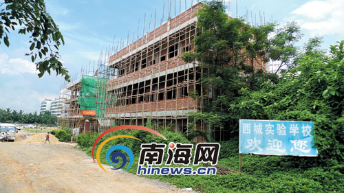 昨天下午,記者趕到這2棟3層樓所處的位置看到:這2棟3層樓的違建建在?谀虾4蟮篮P沔(zhèn)新村西城實(shí)驗(yàn)學(xué)校的門口,與海秀鎮(zhèn)政府相鄰。目前這2棟房子的主體已完工,工人們還搭著腳手架對(duì)樓房的外墻及室內(nèi)進(jìn)行粉飾裝修。