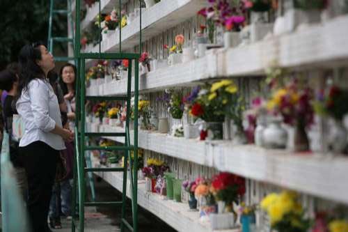 中新網(wǎng)10月17日電 據(jù)香港大公報報道,秋高氣爽,香港大批孝子賢孫在重陽節(jié)前往拜祭先人。不僅將軍澳和鉆石山等墳場,連紅磡一帶的長生店,也有市民手持大包小包祭品,到先人骨灰龕位前拜祭,慎終追遠。有市民到和合石景仰園,向馬尼拉人質(zhì)事件中罹難的其中四名港人致祭。