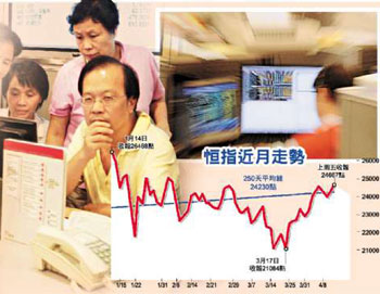 恒指上周累升403點,收報24667點,是3月底以來,連續(xù)三個星期錄得升市,升幅達到3558點,但近期上升動力有緩和跡象。例如當大市低位時,獨領群雄的匯控,近日升勢不繼。反而,內地銀行股卻接力向上。