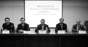 澳門(mén)金業(yè)同業(yè)公會(huì)會(huì)長(zhǎng)藍(lán)鏵纓、理事長(zhǎng)李子豐、副理事長(zhǎng)高忠杰、監(jiān)事長(zhǎng)謝耀宇及秘書(shū)長(zhǎng)尹君樂(lè)主持10日舉行的新聞發(fā)布會(huì)。他們表示,過(guò)去澳門(mén)會(huì)展軟硬件設(shè)施不足,隨著拉斯韋加斯式綜合休閑度假理念延伸來(lái)澳,會(huì)展硬件條件已具備。與香港珠寶制造業(yè)商會(huì)合辦今屆國(guó)際珠寶展,希望借著跨地區(qū)合作吸收及學(xué)習(xí)他人的經(jīng)驗(yàn)。