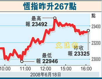 除了內(nèi)地股市左右大市走勢(shì)外,美息走勢(shì)及全球金融市場(chǎng)波動(dòng),都為大市前景造成不明朗因素,有分析員預(yù)計(jì),大市不明朗因素未消,恒指在23500點(diǎn)仍有頗大阻力。不過,摩根大通指,內(nèi)地于奧運(yùn)前未必推出救市措施,港股走勢(shì)目前仍受不同因素影響,與內(nèi)地及美國(guó)的關(guān)聯(lián)性仍然高,加上市場(chǎng)全球化,美股對(duì)港股仍有影響性。