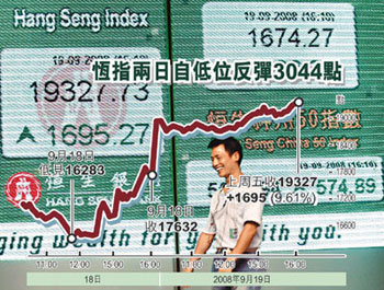 中新網(wǎng)9月22日電 據(jù)香港《文匯報(bào)》報(bào)道,美國政府的一連串救市措施,刺激道指上周五大漲368點(diǎn),收于11388點(diǎn)。21日晚上,國家證監(jiān)會又公布放松上市公司股票回購的管制,無疑為A股再注強(qiáng)心針。