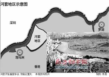 位于深港邊境的河套地區(qū)面積約一平方公里,該地區(qū)的開發(fā)一直是深港合作的焦點議題之一。前不久,香港特區(qū)政府決定分批釋放邊境絕大部分禁區(qū)土地作發(fā)展用途,而目前仍屬禁區(qū)的河套地區(qū),預(yù)計最快在2011年第三季解禁。