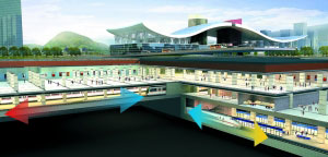 未來建設(shè)的廣深港客運(yùn)專線的時速將達(dá)到300公里。福田車站建成后,從深圳中心區(qū)坐火車去香港九龍只需27分鐘,到廣州新客站只需要33分鐘,而在感受廣深港同城化的同時,乘客也將體驗(yàn)到全國最大地下火車站的魅力。這是一座立體式的換乘樞紐,共分地下三層,最下面一層就是廣深港客運(yùn)專線“D”字頭動車組所運(yùn)行的軌道,而地下二層則與城市軌道交通接駁,其中福田火車站規(guī)劃接駁的設(shè)施包括軌道交通1號線、2號線、3號線、4號線、穗莞深城際線、公交、出租場站等,地下一層是供乘客進(jìn)行換乘、購票、檢票等的樞紐,形成一個大型地下鐵路客運(yùn)綜合站。