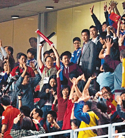 而當香港隊在互射12碼擊敗日本摘金后,曾蔭權(quán)更興奮得跳了起來,與特首辦主任譚志源擁抱慶祝。其瘋狂投入肉緊的程度,遠勝一般球迷。