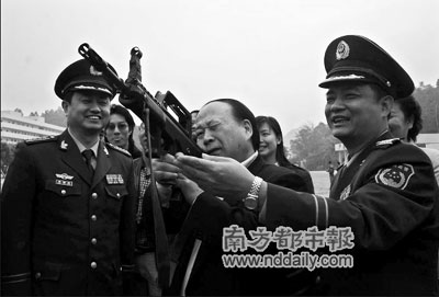 “邊防特勤隊員太厲害了!”昨日(5日),在廣東邊防總隊第七支隊銀湖訓(xùn)練基地看臺上,30多名來自廣州的政協(xié)委員觀看了邊防官兵的警務(wù)技能、汽車碾壓、防暴應(yīng)用射擊等軍事科目的表演?疾熘螅䥇f(xié)委員們還在邊防部門領(lǐng)導(dǎo)的指導(dǎo)下體驗(yàn)了一回“摸槍”的樂趣。