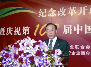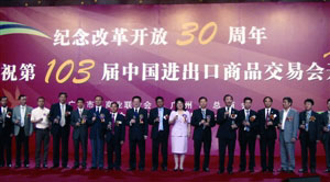 由廣州市工商聯(lián)、市總商會(huì)、市外商投資企業(yè)商會(huì)、市民營(yíng)企業(yè)商會(huì)共同主辦的“紀(jì)念改革開放30周年暨慶祝第103屆中國(guó)進(jìn)出口商品交易會(huì)開幕宴會(huì)”,14日在廣州白云國(guó)際會(huì)議中心舉行。廣州市長(zhǎng)張廣寧,市委副書記蘇志佳,市委常委、統(tǒng)戰(zhàn)部長(zhǎng)孔少瓊等,以及粵港澳商界代表逾1000人出席。
