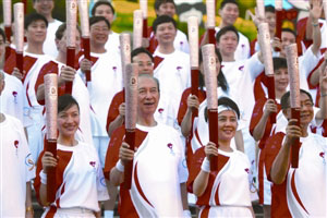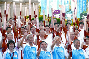 澳門火炬手展燦爛笑容 大合照贈北京奧組委(圖)
