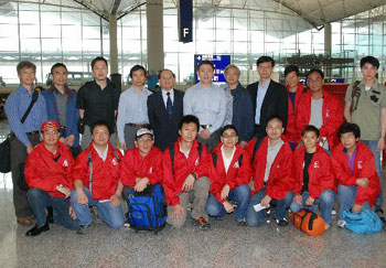 食物環(huán)境衛(wèi)生署署長卓永興、水務署署長馬利德及署理衛(wèi)生署衛(wèi)生防護中心總監(jiān)梁挺雄醫(yī)生,19日早在隊伍出發(fā)前吁請他們把香港市民的關懷和問候帶給受地震影響的災民。他們又向救援隊的無私奉獻表示謝意,并鼓勵他們在行動中竭盡所能。