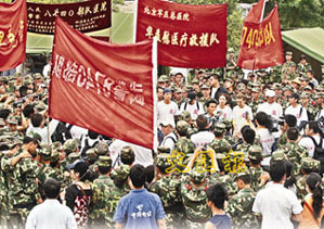 經(jīng)過約一小時的車程去到都江堰市的山峨鄉(xiāng)的一間小學遺址,在那里有數(shù)百武警軍人在救災(zāi),藝人除了高聲為他們打氣外,逐一與他們握手。之后轉(zhuǎn)往軍人正在救災(zāi)的濟南軍區(qū)的軍營慰問,途中又去慰問災(zāi)區(qū)民眾,有民眾見到華仔就哭。藝人在途中加油站借廁所時,路邊的民眾見到他們紛紛要求握手簽名。