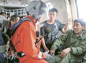 中新網(wǎng)6月2日電 據(jù)香港明報報道,香港飛行服務(wù)隊于四川綿竹高原山區(qū),在超級美洲豹直升機用盡最后一滴汽油之前,驚險地將2名迄今被困最久(19日)的礦工,以及6名解放軍空降兵救起!拔覀兘德錂C場時,汽油剛剛用完,拯救時間每拖延一分鐘,便多一分危險!”港府飛行服務(wù)隊高級機師鄧東成說。