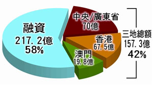 工程費用按大橋對三地的經濟效益攤分。連同廣東資本金在內,內地資本金一共70億元,香港出資67.5億元,澳門則出資19.8億元。三地的資本金額一共157.3億元,占大橋主體建設費約42%。按此推算,大橋主體總造價為374.5億元。余下的建設費將透過三地政府協(xié)議制訂合適可行的貸款融資方案解決。