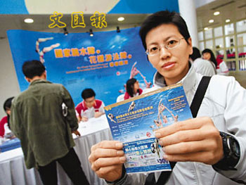 經(jīng)常前來九龍公園游泳池游水的董先生開售前半小時前來購買7張150元的門票,以欣賞在北京奧運會進步最大的花泳隊表演。
